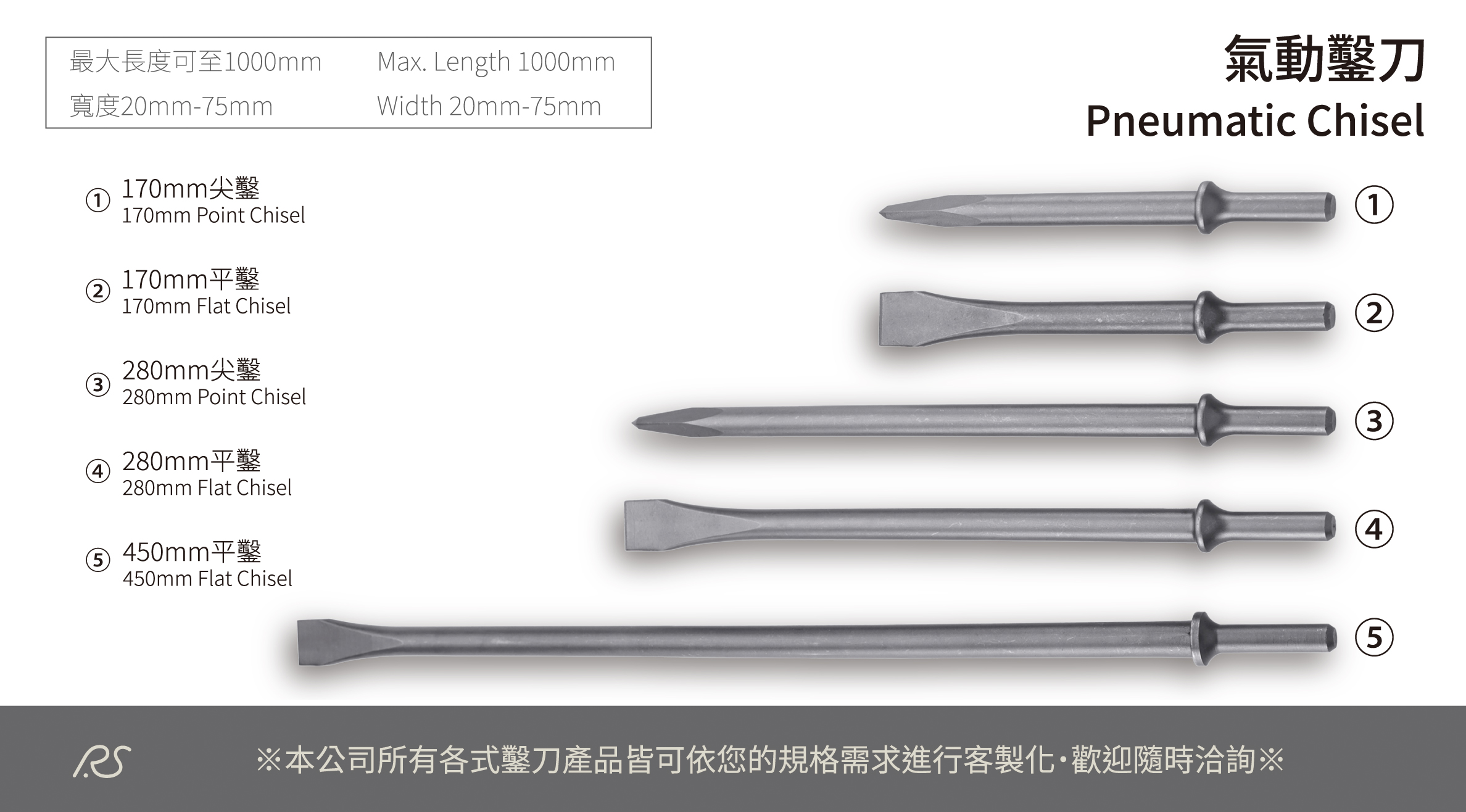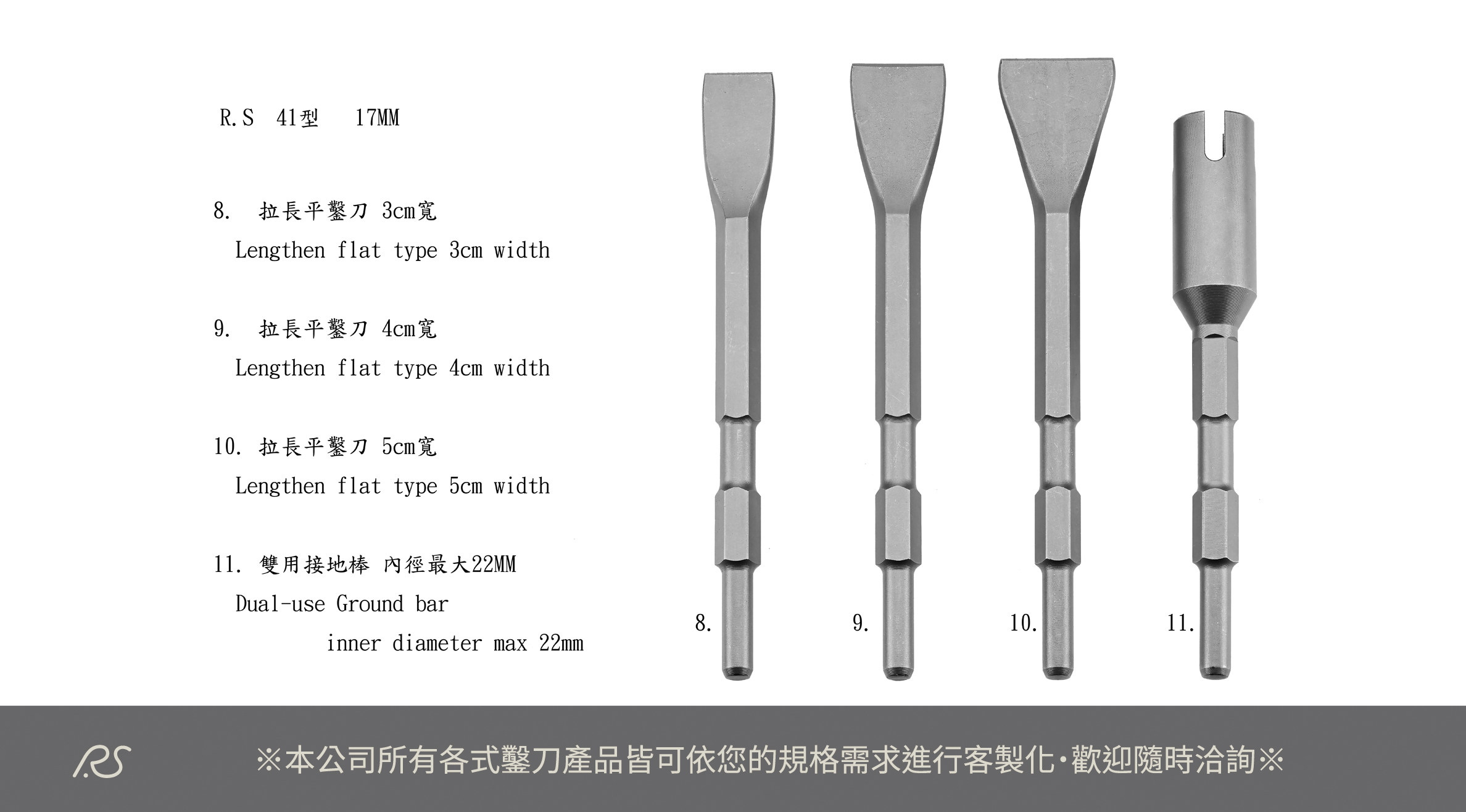 瑞鑫生產鑿刀擁有近30年的專業製造實力,替全世界各大廠牌,包含日系、歐系、美系等客戶,OEM生產各式電動、氣動鑿刀及其他特殊用途鑿刀,所有客戶的愛護及照顧,及配合客戶在產品不斷升級的要求,近年已經完成完整及成熟的鑿刀生產供應鏈。