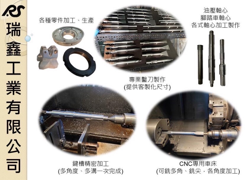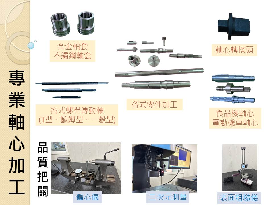 應用油壓軸心、食品機器零件、運動器材軸心、汽機車傳動軸心、齒輪零組件等